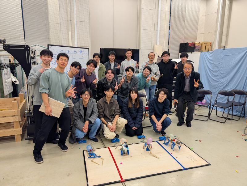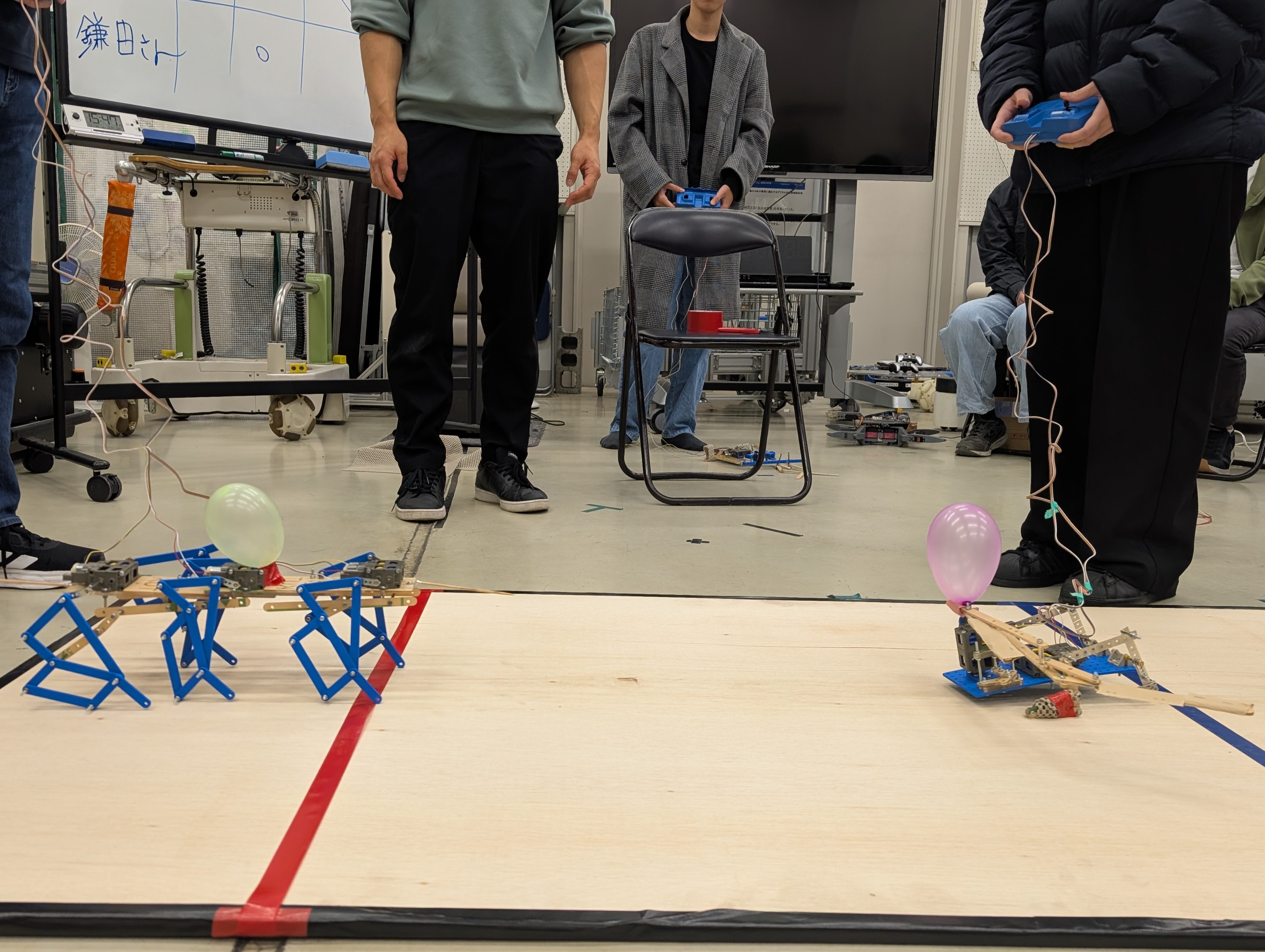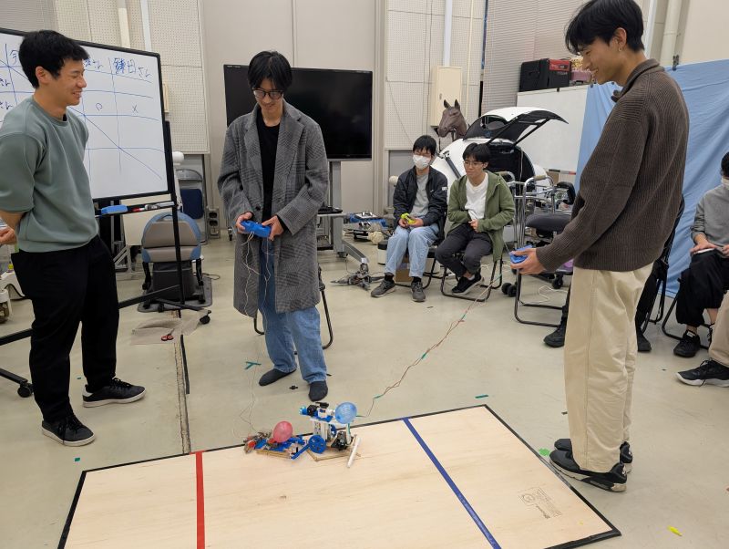 新しく研究室に配属された学部3年生がロボット制作と対決を行いました。