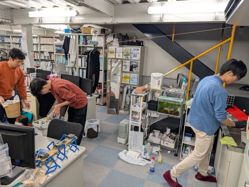 今回は床のワックスがけをはじめ、シンクやゴミ箱の清掃など、普段なかなか手が行き届かない場所を、参加した学生で分担して作業を行いました。