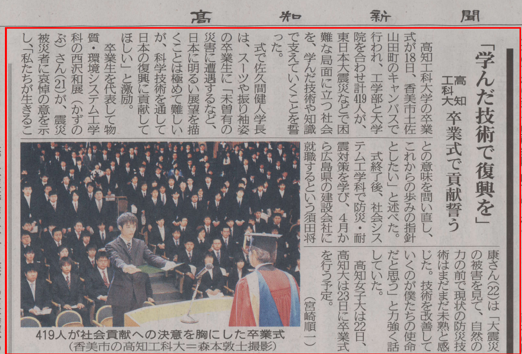 2021.4 王先生のインタビュー記事が高知工科大学の広報誌に掲載されました